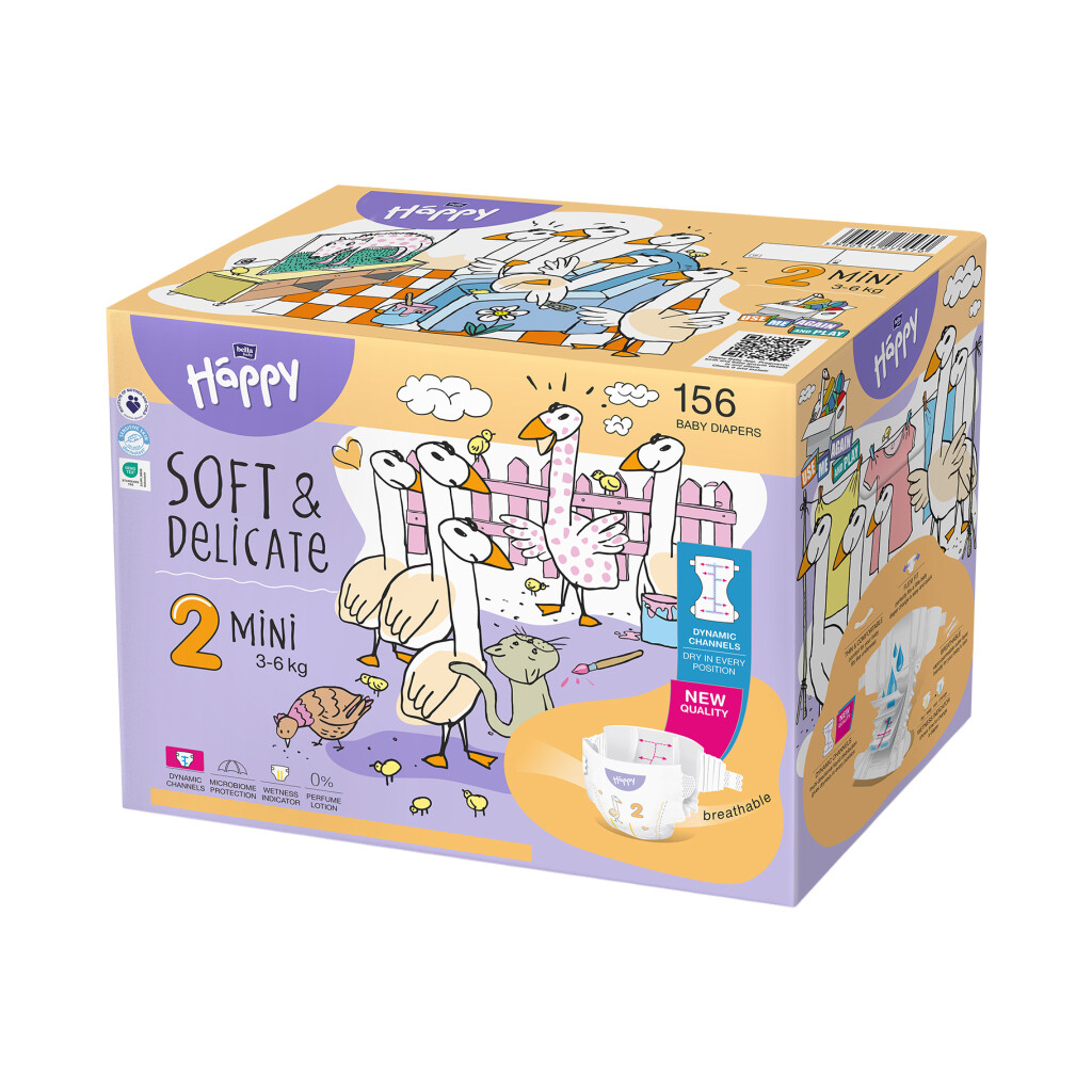 Bella Baby Happy dětské plenky s kanálky Soft & Delicate vel. 2 (3-6 kg), Box 2 x 78 ks