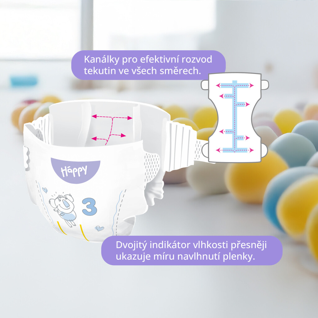 Prodyšné plenky s kanálky a indikátorem vlhkosti