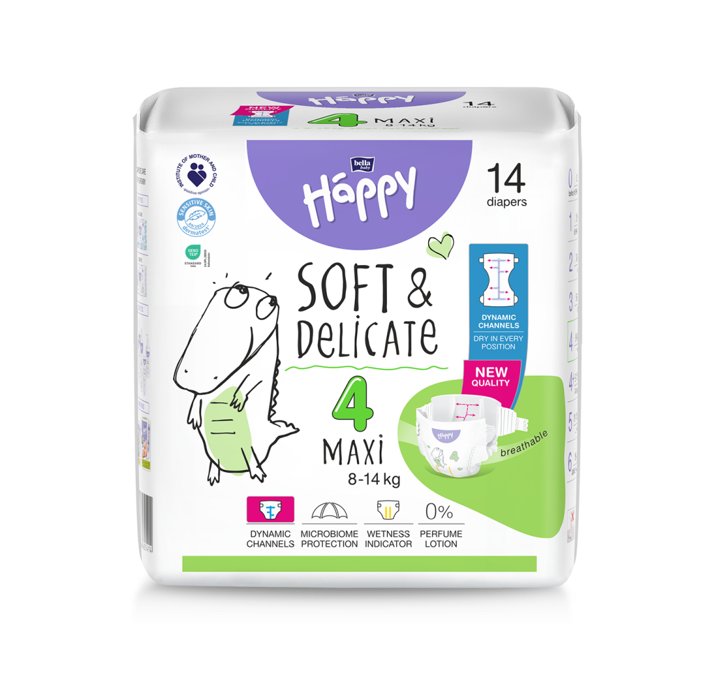 Bella Happy Soft & Delicate Maxi Plus plenky jsou navrženy tak, aby poskytovaly komfort, ochranu a prodyšnost pro děti o váze 9–15 kg. Díky tenkému a lehkému designu s prodyšnou vnější vrstvou plenky umožňují pokožce dýchat a chrání ji před podrážděním a opruzeninami.