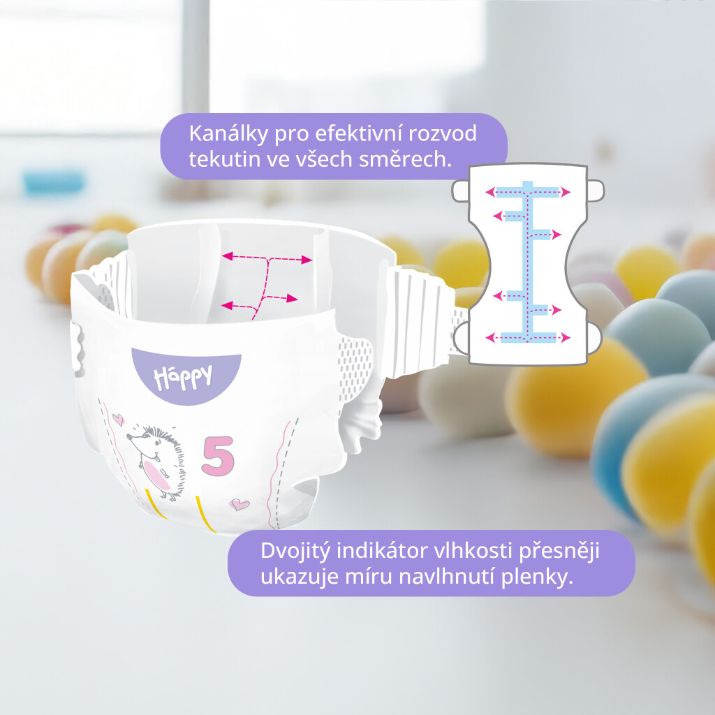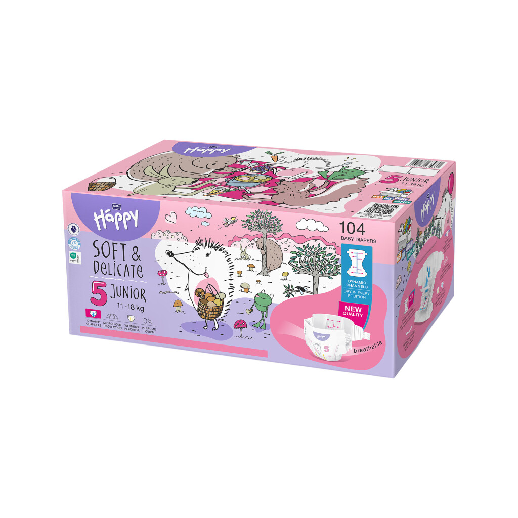 Bella Baby Happy dětské plenky s kanálky Soft & Delicate vel. 5 (11-18 kg), Box 2 x 52 ks