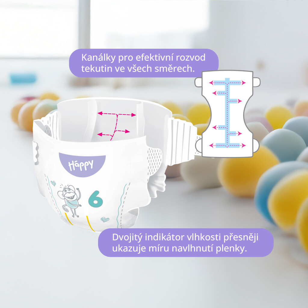 Bella Baby Happy dětské plenky s kanálky Soft & Delicate vel. 6 (15+ kg), 48 ks