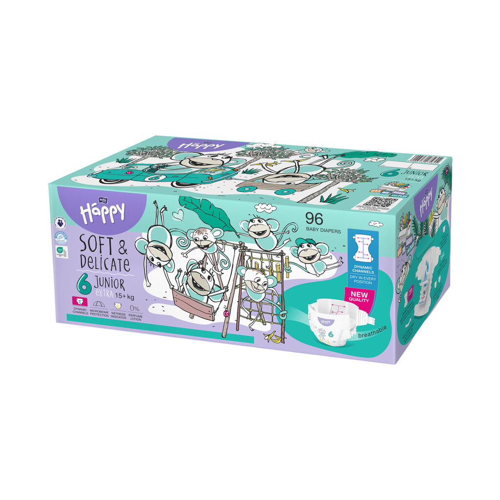 Bella Baby Happy dětské plenky s kanálky Soft & Delicate vel. 6 (15+ kg), Box 2 x 48 ks