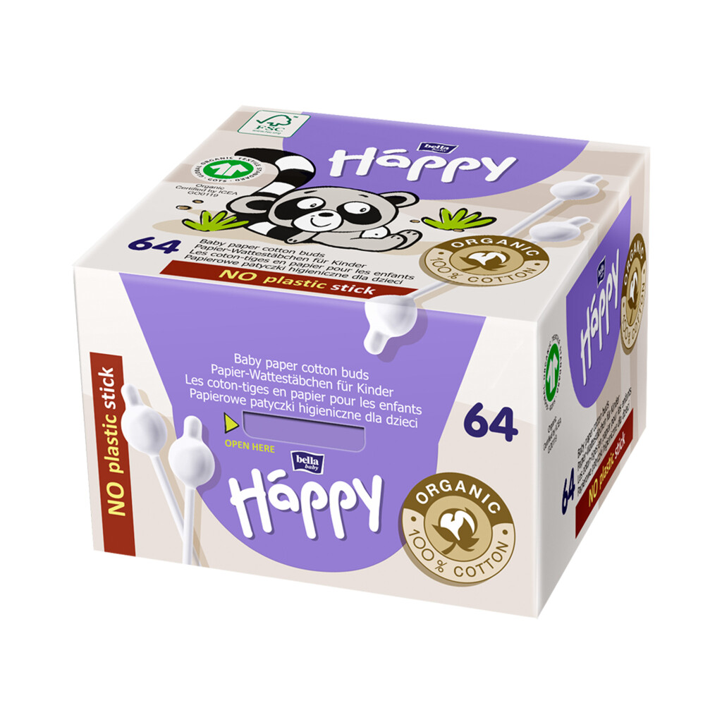 Bella Baby Happy dětské vatové tyčinky jsou vyrobené ze 100% organické a nebarvené bavlny, což zajišťuje mimořádnou jemnost a šetrnost vůči křehké pokožce vašeho dítěte. Tyčinky jsou vybaveny 100% papírovou tyčinkou s omezením, které efektivně brání příliš hlubokému zasunutí a chrání ušní kanál dítěte před nesprávným použitím.