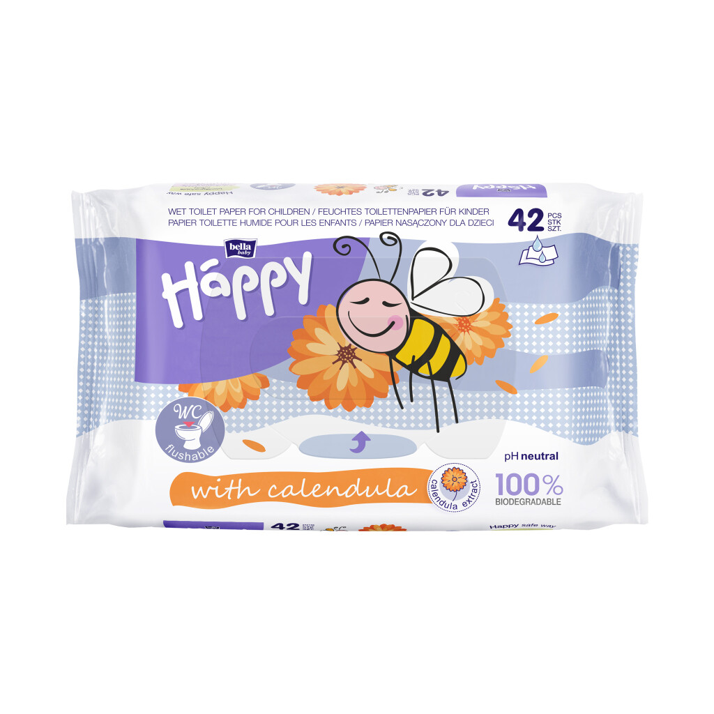Bella Baby Happy dětský vlhčený toaletní papír s měsíčkem lékařským, 42 ks