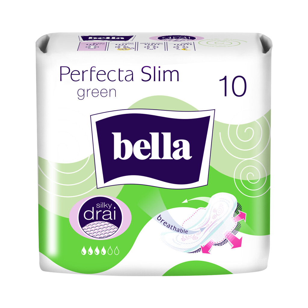 Bella Perfecta Slim Green jsou pouze 2 mm tenké menstruační vložky, které zůstávají neviditelné i pod velmi těsným oblečením. Díky speciální síťce SILKY DRAI se systémem mikrokanálků odvádějí vlhkost dovnitř vložky a zajišťují tak dokonalý pocit sucha.
