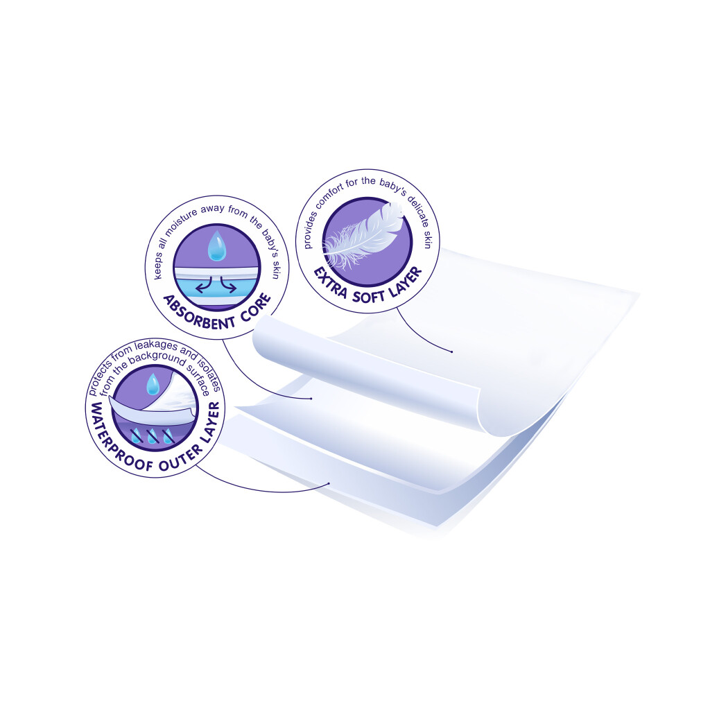 Tyto podložky jsou ideálním pomocníkem nejen doma, ale i na výletech či procházkách. Můžete je také použít jako ochranu lůžkovin v dětské postýlce nebo při péči o dítě po koupání. Pokud se podložka neznečistí, lze ji použít znovu.