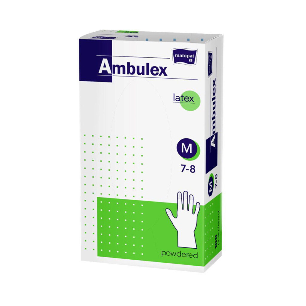 Matopat Ambulex latexové rukavice pudrované nesterilní M, 100 ks