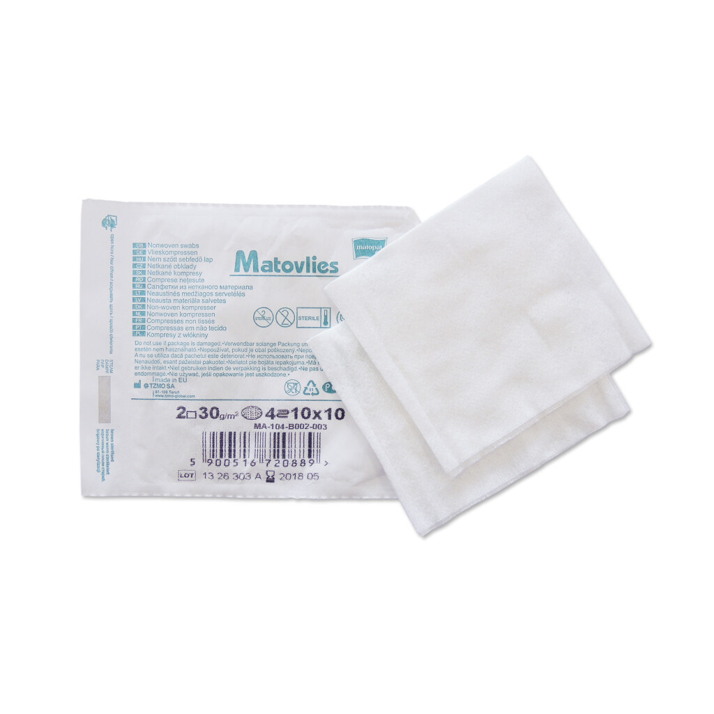 Sterilní netkané kompresy Matopat Matovlies jsou vyrobeny z měkkého, vysoce savého materiálu, který zajišťuje šetrnou a efektivní péči o rány. Díky 4vrstvé struktuře poskytují vysokou absorpční schopnost a jsou vhodné pro čištění, krytí a ošetření ran.